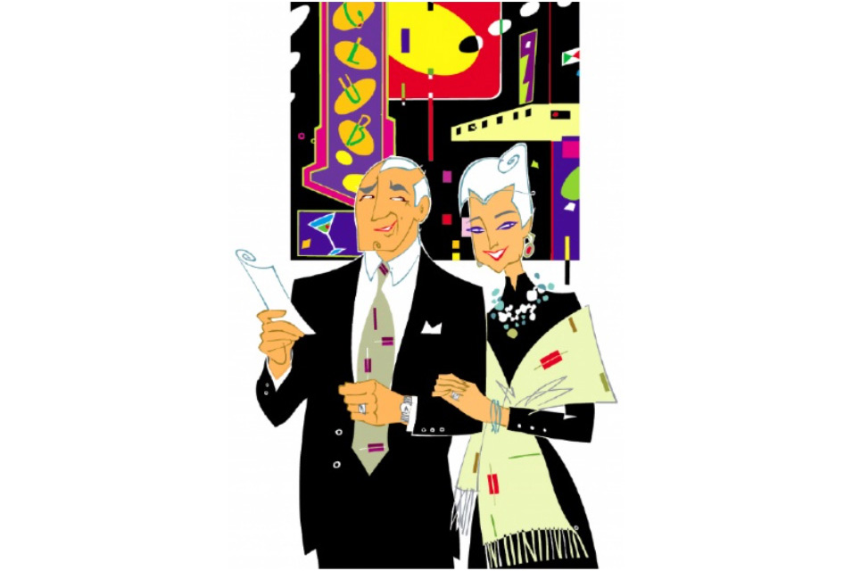 OUT ON THE TOWN 9"x12" . pen and ink, Adobe illustrator